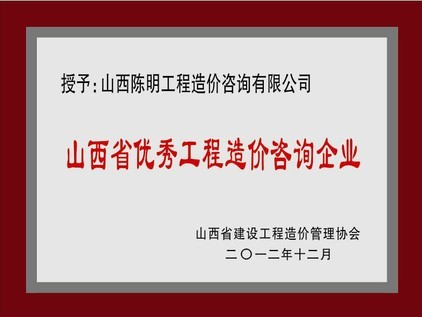 山西省優(yōu)秀工程造價(jià)咨詢企業(yè)