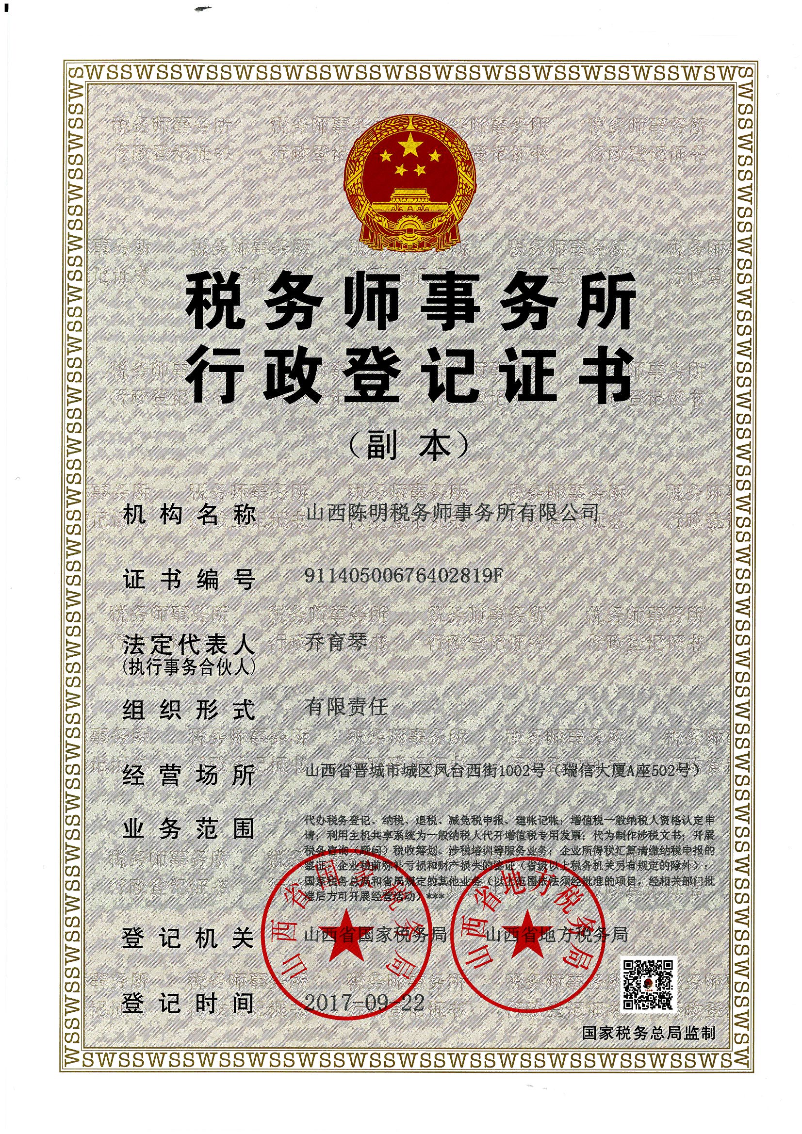 祝賀山西陳明會計師事務(wù)所有限公司獲山
