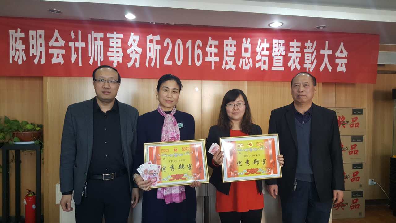 2月11日上午,陳明會計師事務(wù)所全體員工在會議室隆重召開公司2016年度工作總結(jié)暨表彰大會,大會由史志忠經(jīng)理主持。